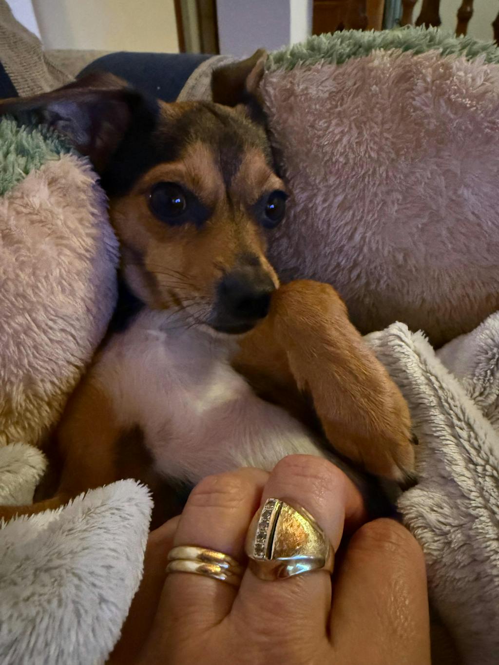 Moja toy pudla nije bježala u WC iza WC školjke kao prošle godine kada su pucale petarde, samo bi me pogledala u maloj panici a ja sam joj rekla "dobro je, dobro je" i ona se odmah smirila. Davala sam joj pola Chews Zen tri tjedna.